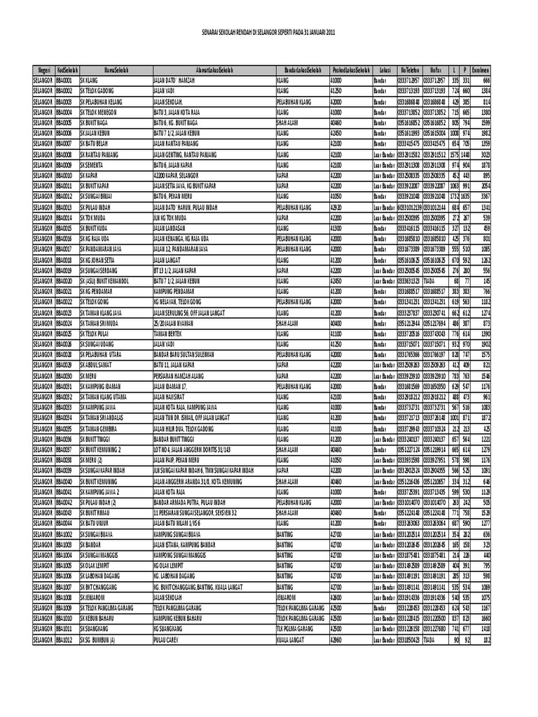 Sekolah terbaik di Malaysia - sekolah rendah. Senarai Sekolah Rendah Dan Menengah Mengikut Negeri 31 JANUARI 2018 5. Senarai Sekolah PPD Klang Selangor beserta alamat nombor telefon nombor faks alamat emel kod sekolah lokasi sekolah jenis sekolah jumlah guru jumlah murid kawasan PPD dan lokasi GPS Google Maps.
